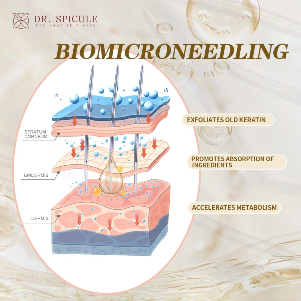 Medikaalinen biomikroneulaus on uusi, kivuton ja turvallinen hoitomenetelmä, joka neulaa tehoaineet syvälle ihoon. Se tuo mikroneulauksen vaikutukset ilman fyysisiä neuloja!