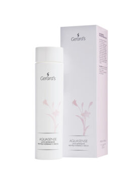 Kun iho on vastaanottavainen hoitotuotteille, on avainasemassa sen nesteytys (vesikosteus) ja kosteutus (rasvakosteus). Tämä onkin hyvä hetki kartoittaa asiakkaan puhdistustuotteet, onko käytössä esimerkiksi geelimäinen tuote, vai öljy-, voide- tai maitomainen puhdistus. Natisevan puhtaaksi pesty iho päätyy herkästi kierteeseen, jossa se yrittää itse kosteuttaa itseään. Tällöin iho kiiltelee ja tuntuu rasvaiselta, jolloin asiakas saattaa pestä kasvojaan entistäkin tujummilla ja aineilla. Kun ihon puhdistus on hellävarainen, toimii iho tasapainoisemmin ja vääristä hoitotavoista johtuva kasvojen kiiltely vähenee. Suosittele esimerkiksi Gerard’s Aquasense Latte Detergente puhdistusmaitoa (2).