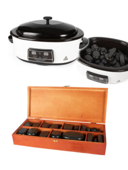 Sisältää kivilämmittimen 5,7l (nro 376008) ja 64 kiven setin (nro 376003). Kivet toimitetaan kauniissa puisessa laatikossa. Sileät ja ei-huokoiset basalttikivet luovuttavat lämpöä jopa 45 minuuttia. Kuumakivihieronnan lisäksi voit tehdä myös vartalon muokkaushoitoja käyttäen hoitovoiteita jotka vaikuttavat kehon rasva-ainevaihduntaan. Lämmittävät kivet tehostavat voiteiden ominaisuuksia.
