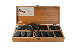 Ylellinen 33-osainen kuumakivihieronta –setti bambulaatikossa. Pehmeät ja ei-huokoiset basalttikivet luovuttavat lämpöä jopa 45 minuuttia. Kuumakivihieronnan lisäksi voit myös tehdä vartalon muokkaushoitoja käyttäen voiteita jotka vaikuttavat kehon rasva-ainevaihduntaan. Lämmittävät kivet tehostavat voiteiden ominaisuuksia.