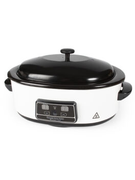 Kivilämmitin, jossa lämmität kätevästi kivet kuumakivihierontaa varten. Kattilassa digitaalinen näyttö.