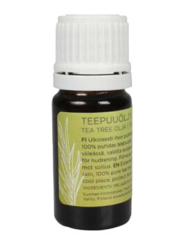 Laimenna teatree pohja öljyyn, jos sientä on useammassa kynnessä tai koko jalkapohjassa: 4 ml pohja öljyä ja 3 tippaa teepuu öljyä.