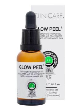 CLINICCARE Glow Peel on kemiallinen kuorinta, joka häivyttää ikääntymisestä aiheutuneita pigmenttivirheitä, heleyttää ja nuorentaa ihoa. Sekoita Peel Blenderin 49404304 kanssa, jonka avulla kuorinnan voi räätälöidä yksilöllisesti.