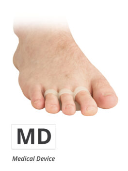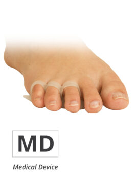 Auttaa korjaamaan koukistuneiden varpaiden virheasentoja. Ehkäisee myös hiertymien syntymistä koukistuneissa varpaanpäissä. Pysyy hyvin paikoillaan. Käytetään sukan alla ja sopii myös aktiiviliikkujille. Aseta geelityyny varpaiden alle paksumpi pää isovarvasta kohden, lenkit pujotetaan 2.-4. tai 3.-5. varpaisiin. Pidä päivittäin 3-4 tuntia taukoa tuotteen käytössä, jotta iho voi hengittää.