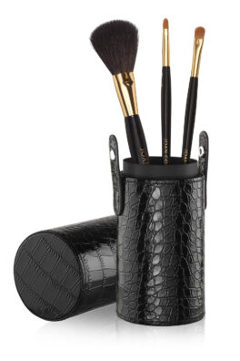 Dynastian megaleidin tyylikkäässä sivellinkotelossa on kolme suosituinta sivellintä. Poskipuna- luomiväri ja huulipunasivellin. Kotelo on tyylikäs meikkipöydällä ja suojaa siveltimiä pölyyntymiseltä. Kulkee myös kätevästi mukana.