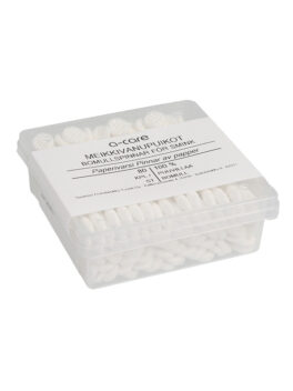 Pehmeät puuvillapäät on valmistettu 100 % puuvillasta, ja varsi on paperia.