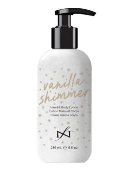 Vanilla Shimmer Hand & Body Lotion on nopeasti imeytyvä, ei-rasvainen käsien ja vartalon kosteusvoide, joka hoitaa ihoa tehokkaasti ja viimeistelee sen hienovaraisella kullanhohtoisella hehkulla. Koostumus perustuu palkittuun Luxury Dadi’ Lotion -voiteeseen ja soveltuu erinomaisesti sekä ammattikäyttöön että hoitolan myyntituotteeksi.