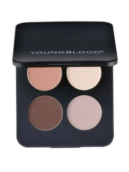 Luomiväripaletti, jossa neljä kauniisti toisiinsa soveltuvaa sävyä. Younblood meikit soveltuvat herkkäsilmäisillekin. Runsaspigmenttinen koostumus, joka pysyy erinomaisesti luomilla. Väripigmentit ovat mineraaleja, jotka samalla hoitavat luomia.