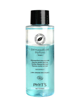 Phyts Bi-phase silmämeikinpoistoaine poistaa tehokkaasti ja hellävaraisesti silmämeikin, myös vedenkestävän.