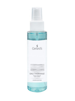 Gerard’s EAU Thermale Spray -hoitovesi. Palauttaa hydrolipiditasapainon ja rauhoittaa punoitusta ja pientä ärsytystä. Voidaan käyttää kasvovetenä tai suihkeena meikin kiinnittämiseen.