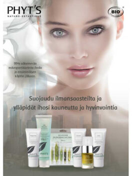 PHYT’S Kineplast -kasvohoidossa käsitellään manuaalisesti ihoa ja kasvolihasten faskioita, Hoito säilyttää ihon luonnollisen kauneuden, lievittää kasvojen jännitystiloja ja aktivoi 50 eri kasvolihasta, parantaa ihon hapenkulkua ja edistää uusien solujen syntyä.