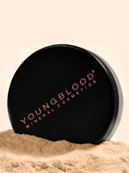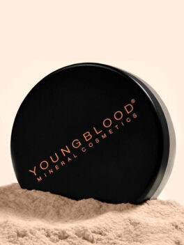 Kopauta puuteria hieman rasian kanteen ja levitä kasvoille pyörivin liikkein valitsemallasi Youngblood siveltimellä.