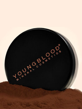Kopauta puuteria hieman rasian kanteen ja levitä kasvoille pyörivin liikkein valitsemallasi Youngblood siveltimellä.