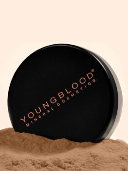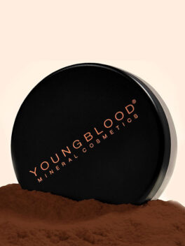 Kopauta puuteria hieman rasian kanteen ja levitä kasvoille pyörivin liikkein valitsemallasi Youngblood siveltimellä.