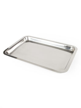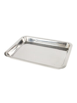 Ruostumatonta terästä oleva tarjotin on tarkoituksenmukainen ja hygieeninen alusta instrumenteille. Tarjottimissa matala reuna, joten instrumentit eivät putoile. Uritus pohjalla pitää instrumentit järjestyksessä.