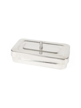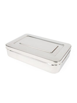 Tiiviskansinen laatikko instrumenttien säilyttämiseen. Ruostumatonta terästä.