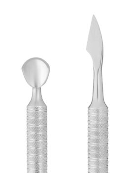 Kaksipäinen instrumentti kynsinauhojen käsittelyyn ja kynsilevyn puhdistamiseen. Sopii sekä sormien että varpaiden kynsille. Liukumaton varsi takaa erinomaisen pidon.