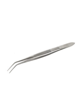 Ruostumattomasta teräksestä valmistetut vinokärkiset pinsetit. Pituus 10cm. Pinsetin pinta käsitelty liukumattomaksi. Erittäin hienot ja kapeat timattikeraamiset kärjet.