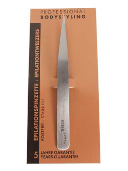 Ruostumattomasta teräksestä valmistetut, ergonomisesti muotoillut vinokärkiset pinsetit. Pinsetit on tarkoitettu haastavien karvojen poistoon, erikoisinstrumentiksi, ei jatkuvaan käyttöön. Käytetään vain silloin, kun mikään muu pinsetti ei ota kiinni karvaan.