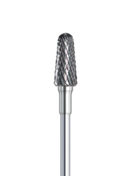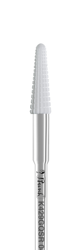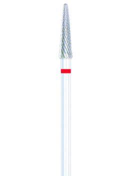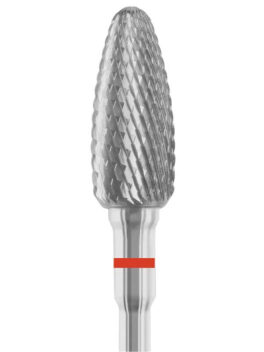 Vasenkätiselle rihlattu poranterä. Tämän kartio karbidin ristirihlaus on hieno, eli se sopii kynnen viimeistelyyn tai sen maltilliseen ohentamiseen. Karbiditerän pintaan on rihlattu ristikkäiset uurteet ja siksi leikkaava pinta on on hyvin tehokas. Karbidi kestää pidempään kuin ruostumaton teräs ja on helpompi puhdistaa. Terät sopivat parhaiten vesiporan kanssa työskentelyyn mutta voit käyttää niitä myös imuri- ja kuivaporan kanssa. Pinnan rakenne ja suunta on suunniteltu niin että vesiporaa käyttäessäsi kynsipöly valuu veden mukana pois. Tämän terän halkaisija on 4,5 mm ja max. kierrosnopeus on 65000 r/min
