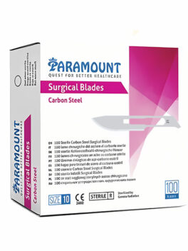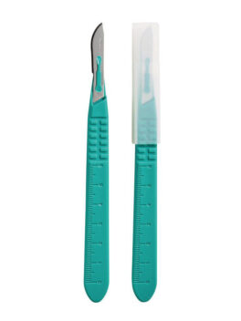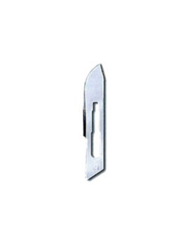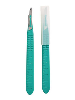 Ruostumattomasta teräksestä valmistettu kertakäyttöinen veitsenterä muovisella varrella. Yksittäin pakattu, steriili, terä suojattu erikseen muovikuorella.