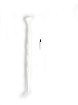 Ergonominen varsi ja kaksipäinen, suoralla ja kaarevalla päällä varustettu täsmäinstrumentti titaanilangan asentamiseen oikeaan asentoon.