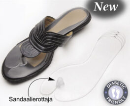 Ihana pohjallinen kesäkenkiin, joka on mukavan pehmeä ja siinä on varvastossun narulta suojaava erotin. Pohjallisen pinta ei tunnu nihkeältä, mutta koska se ei ole kangasta, se pitää hikoilevankin jalan hyvin paikoillaan kengässä.