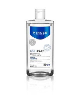 Mincer Pharman raikas ja kevyt misellivesi meikinpoistoon ja kasvojen nopeaan puhdistukseen. Todellinen 3-in1 –tuote: meikinpoisto, puhdistustuote ja kasvovesi samassa pullossa! Hellävarainen myös silmille, sisältää rauhoittavia ainesosia kuten lakritsinjuuriuutetta, betaiinia, allantoiinia ja pantenolia. DERMATOLOGISESTI TESTATTU.