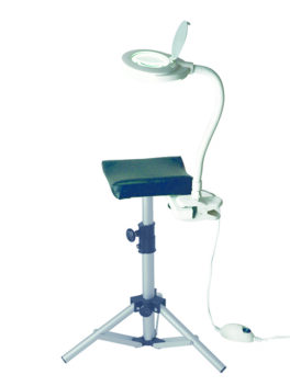 Kätevä valollinen suurennuslamppu, joka voidaan kiinnittää mukana toimitettavan pidikkeen avulla jalkatukeen, kantolaukkuun tai mihin tahansa muuhun soveltuvaan kalusteeseen. Erityisen pitkä varsi mahdollistaa valon kohdistamisen optimaaliseen paikkaan. Lamppu ei kuumene käytössä ja näin sitä voi kuljettaa myös heti käytön jälkeen. Lampun suojakannen värin voi valita mukana tulevista kolmesta vaihtoehdosta: valkoinen, harmaa, sininen.