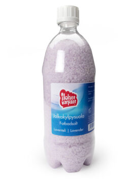 Lilanväriset kiteet tuovat jalkakylpyyn pehmeän ja rauhoittavan tunnelman. Laventelin tuoksu rentouttaa sekä mieltä että kehoa, tehden hoitohetkestä kokonaisvaltaisesti hyvinvointia tukevan.