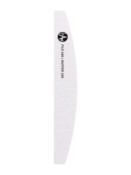 100/180 Half Moon- Materiaalin poistoon ja vähentämiseen 100 grittisellä ja rakennekynsien tasoittamiseen 180 grittisellä puolella. Puolikuun muoto on täydellinen kynsinauha-alueen viilaamiseen.
