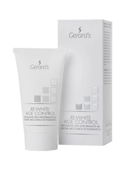 Gerard’s RE-WHITE Exfoliant -kaksivaiheinen kuorinta. Uuden sukupolven kaksivaikutteinen kuorinta (mekaaninen ja entsymaattinen), kehitetty uudistamaan ja tasoittamaan pigmentoitunutta ihoa. Tuloksena raikas ja kuulas iho, jonka hapensaanti on parantunut.