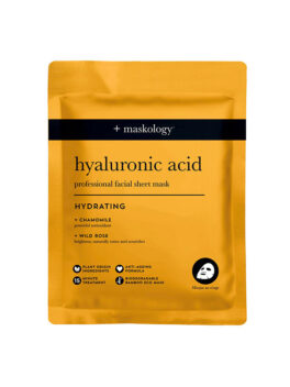 +maskology Hyaluronic Acid ammattilaiskasvonaamio käyttää täysin luonnollisia ainesosia tehokkaasti sitomaan kosteutta ja tarjoamaan iholle syvää ravintoa. Iho kosteutuu ja kirkastuu soijapavun ja kamomillan voimalla.