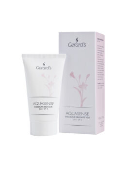 Gerard’s AQUASENSE Emulsione 24h -kasvovoide. Kevyt, nopeasti imeytyvä, kaksivaikutteinen emulsio. Kosteuttaa ja suojaa ihon luonnollista kosteustasapainoa sekä ennaltaehkäisee ihokudoksen kuivumista ja hidastaa sen ohenemista.