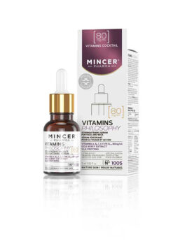 Mincer Pharman vitamiiniseerumi kasvoille ja kaulalle. Taistelee ihon veltostumista ja napakkuuden menetystä vastaan. Silottaa ja kiinteyttää. Erittäin antioksidanttirikas vitamiiniyhdiste on Mincer Pharma innovaatio. Sisältää mm. gojimarjauutetta ja silkkiproteiineja.