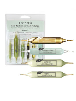 REVIDERM SOIN REVITALISANT ANTI-POLLUTION hoitokokonaisuus. Tehokas kasvohoito stimuloimaan ihon toimintoja ja kirkastamaan väsyneen, harmaan ja huonokuntoisen elottoman ihon. Tehostaa ihon pintaverenkiertoa, parantaa solujen hapenottokykyä, kirkastaa ja virkistää väsynyttä ihoa.