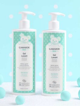Gamarde Bébé Gel Lavant on kosteuttava ja puhdistava pesugeeli, joka sopii herkälle vauvan iholle. Se puhdistaa hiukset ja vartalon hellävaraisesti, jättää ihon pehmeäksi ja antaa raikkaan, puhtaan tuoksun. Ei sisällä saippuaa, on helppo huuhdella ja ei kirvele silmissä.