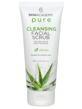 Skin Academy Pure Cleansing Facial Scrub puhdistaa hellävaraisesti ihohuokoset, epäpuhtaudet sekä tasoittaa ihoa poistamalla kuolleet ihosolut.