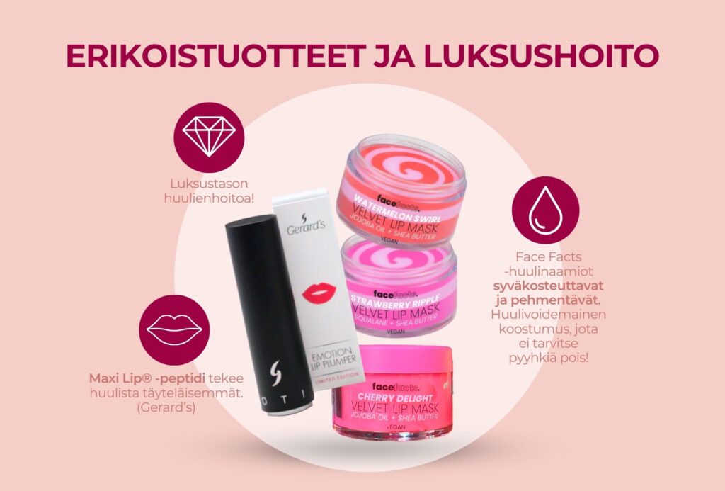 Luksushuulivoiteet ja -hoidot houkuttelevat asiakkaita, jotka haluavat huulilleen täyteläisyyttä ja hemmottelua. Nämä tuotteet toimivat loistavasti lisämyynnissä, sillä ne tarjoavat erityishoitoa.