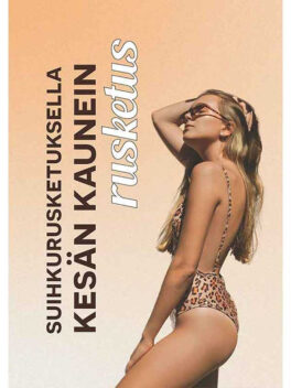 Kausijuliste Suihkurusketuksella kesän kaunein rusketus. Koko 50×70 cm, materiaali julistepaperi.