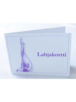 ”Joogaava karhunpentu” on laatukartongille painettu hoito- ja tuotelahjakortti. Kaksipuolinen pystymalli, koko 10,5 x 21 cm.