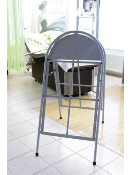 Ulkokäyttöönkin soveltuva jykevä julisteteline, jonka runko on harmaata metalliputkea. Sisältää 2 muovitaskua julisteille. Lisätaskuja ostettavissa myös erikseen!
