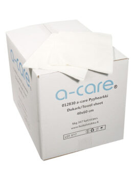 a-care pyyhearkki on pehmeää, paksua ja hyvin imukykyistä paperia. Kuivaa hyvin ja on todella kestävää ja nukkaamatonta.