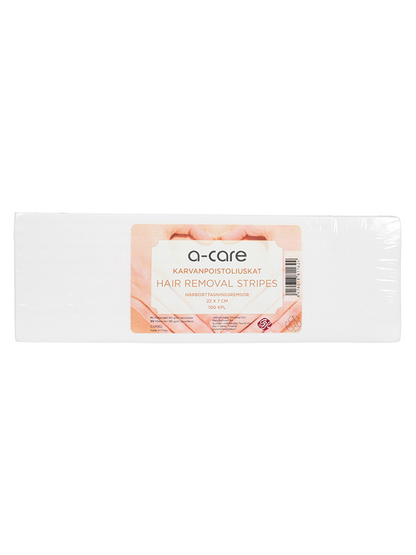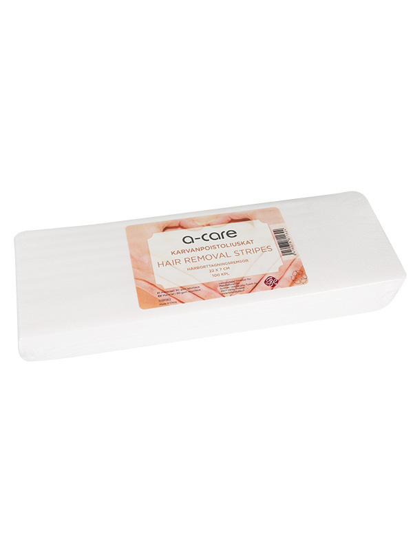 Laadukkaat a-care kuitukangasliuskat sopivat karvanpoistoon lämminvahalla. Tukeva ja repeämätön spunlace-materiaali (90 gsm) takaa miellyttävän ja tehokkaan vahanpoiston. Liuskojen koko 7 x 22 cm on ihanteellinen sekä kasvojen että vartalon alueille.