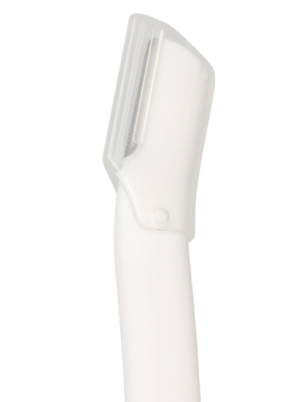 Ergonomisesti muotoiltu kulmakarvaveitsi tarjoaa ammattilaisille helppokäyttöisen ja tarkan työkalun kulmakarvojen muotoiluun ja siistimiseen. Veitsessä on suojakorkki, joka suojaa terää ja estää vahingot säilytyksen aikana.