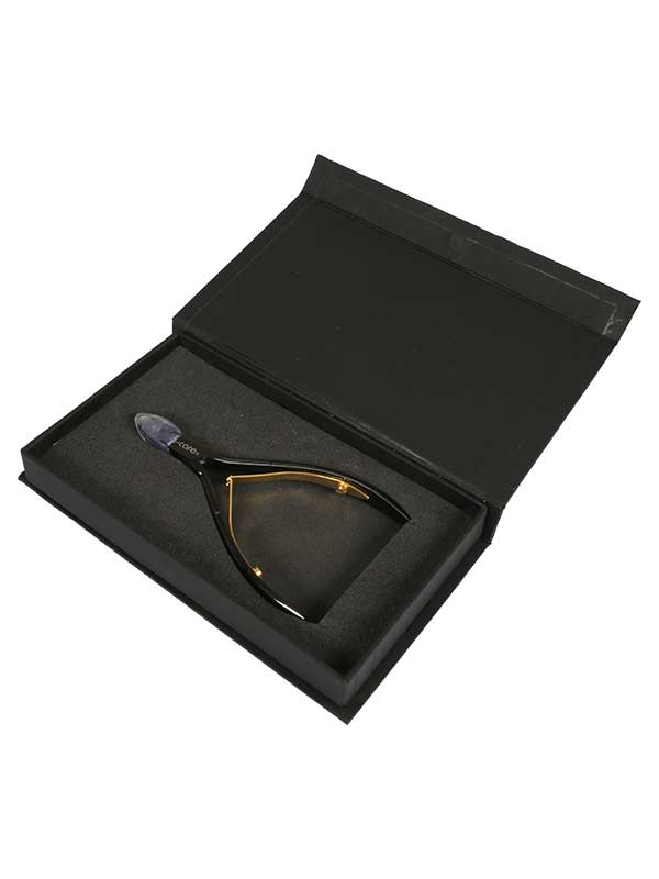 Titaanipinnoitetut, ruostumattomasta teräksestä valmistetut, tyylikkäät leikkurit, kullanvärisillä jousilla. Toimitetaan mustassa rasiassa.