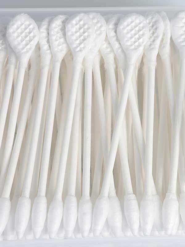 Pehmeät puuvillapäät on valmistettu 100 % puuvillasta, ja varsi on paperia.
