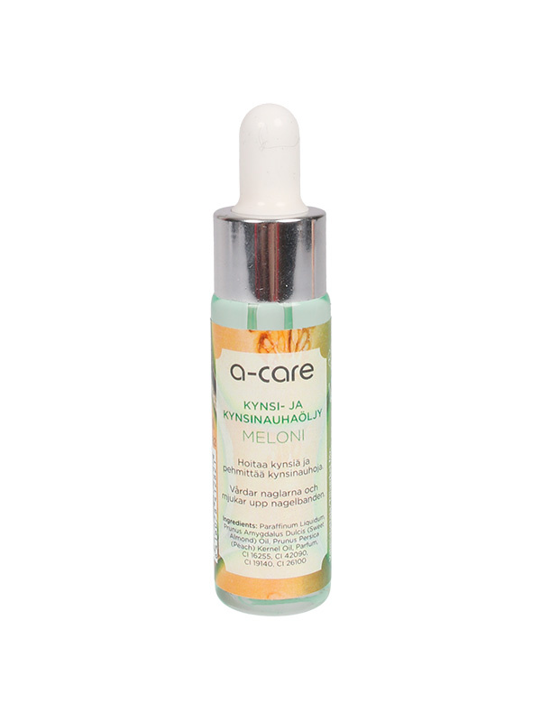 Melonin tuoksuinen kynsi- ja kynsinauhaöljy. Sisältää manteli- ja persikkaöljyä, jotka kosteuttavat ja ravitsevat kynsinauhaa sekä vahvistavat kynttä.