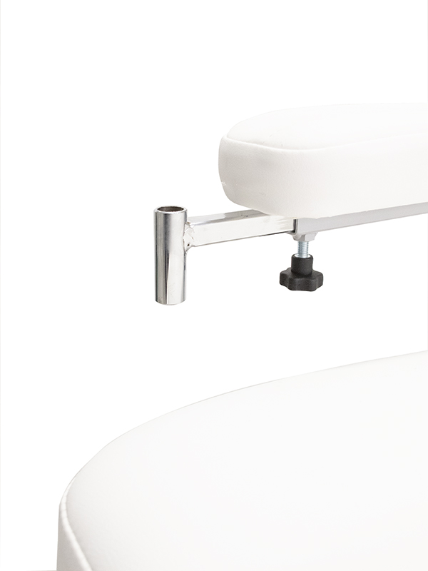 Hillitty harmaa runko sopii jokaisen hoitolan tyyliin. Päällinen on helppohoitoinen ja erikoispehmuste sen sisällä pysyy kuosissa ja suo asiakkaalle miellyttävän hoitokokemuksen. Tuoliin on helppo istuutua ja siinä on reilusti leveyttä. Tuolin käsinojan alapuolella on teline luuppilamppua varten, jolloin valon voi kohdistaa yhtä helposti niin kasvoille kuin jaloillekin. Siirtopyörien avulla tuolia voi kevyesti liikutella nostamalla jalkopäästä.