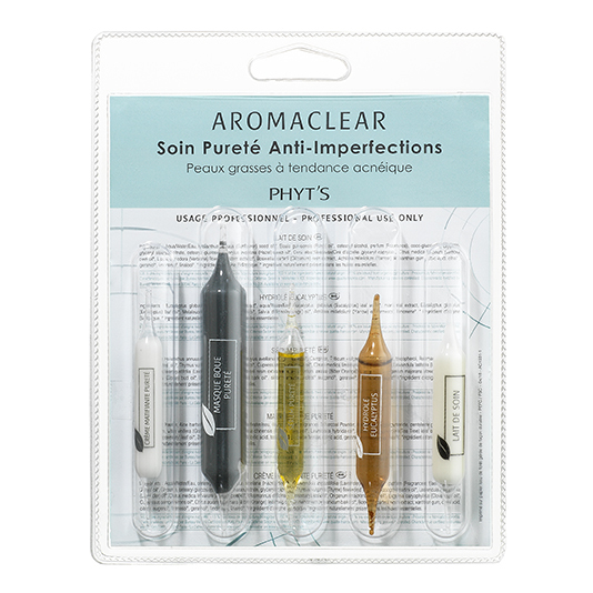 Phyt’s Aromaclear on sertifioitu luonnonkosmetiikkahoito, joka on suunniteltu erityisesti rasvaiselle ja epäpuhtaalle iholle, jossa esiintyy tukkeutuneita ja laajentuneita ihohuokosia, epätasaisuutta sekä epäpuhtauksia.
